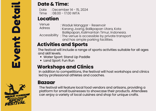 Waduk Manggar, terletak di Kalimantan Timur, dikenal sebagai salah satu destinasi wisata alam yang indah dengan panorama hutan tropis yang asri dan danau luas. Menyediakan suasana tenang dan udara segar, waduk ini menjadi tempat ideal untuk kegiatan outdoor. Pada tahun 2024, Waduk Manggar akan menjadi tuan rumah Stand Up Paddle Open 2024, menarik peserta dari seluruh Indonesia dan Asia untuk berlomba dan menikmati keindahan alam Kalimantan. Selain lomba, acara ini diharapkan meningkatkan kesadaran lingkungan dan pariwisata di Kalimantan Timur, mendukung perkembangan olahraga air serta promosi wisata lokal.